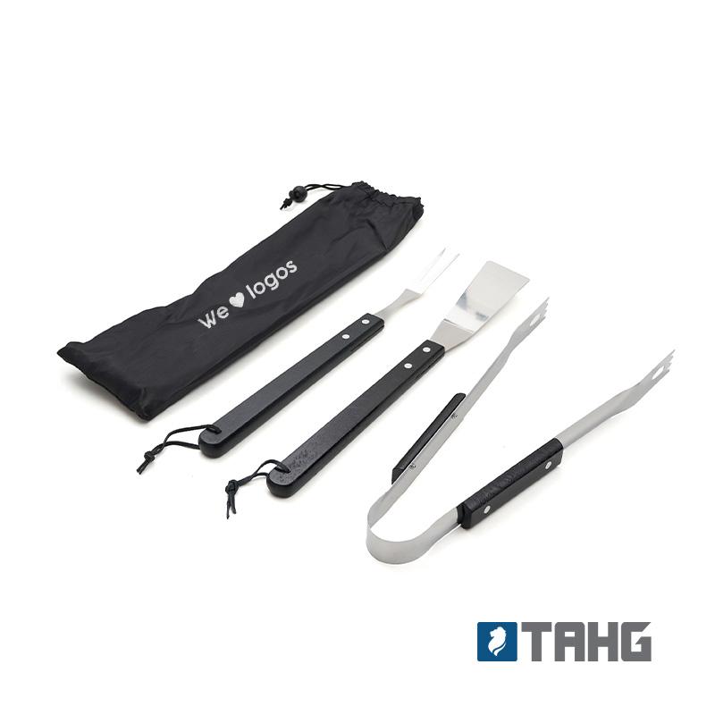 Descripción general del producto: Set para barbacoa de madera y acero inoxidable.