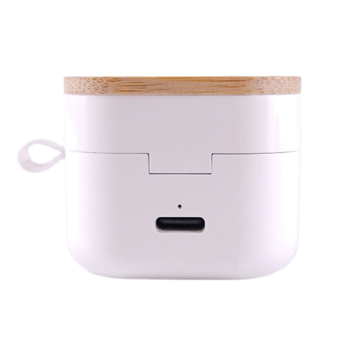 Descripción general del producto: Auriculares inalámbricos fabricados en RABS, bambú y silicona. Cada auricular cuenta con un botón touch que permite contestar y finalizar llamadas, reproducir y pausar música, cambiar a la siguiente o anterior canción. Tienen tecnología Bluetooth 5.3, una duración de batería de aproximadamente 4 horas y un estuche de carga de 300 mAh, el cual se carga a través de un cable usb c. Los auriculares cuentan con almohadillas de diferentes tamaños, y viene en una bolsa 100% compostable dentro de una caja de cartón junto a su manual de instrucciones y cable cargador. Reuseme. Dimensiones: 4,1 x 3,5 x 3,3 cm.