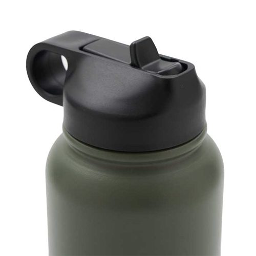 Botella isotérmica de 1000 ml, con doble pared de acero inoxidable 18/8, pintura en polvo y base de silicona antideslizante, mantiene tus bebidas frías durante 12 horas y calientes durante 8 horas. Cuenta con dos tapas negras a rosca, para que utilices la que te resulte más cómoda: la primera, con boquilla y anillo para facilitar el agarre, y la segunda con manija para transportarla. Incluye 2 sorbetes y cepillo limpiador.