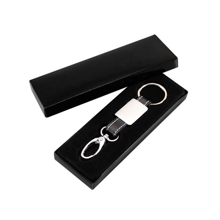 Llavero Metal-Cuero modelo "Technic". Presentación en estuche laminado negro con cuna aterciopelada.