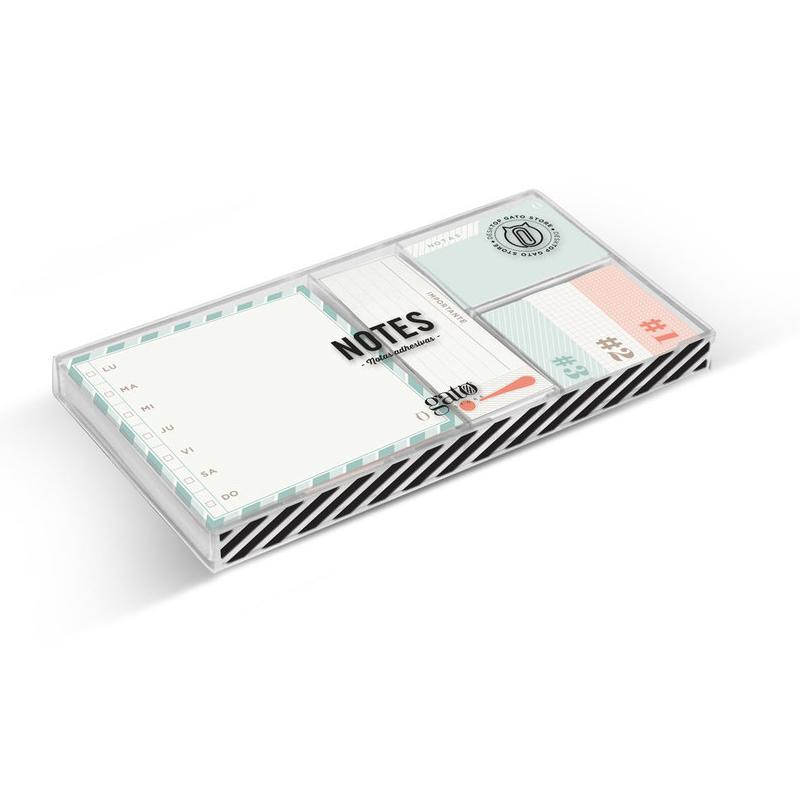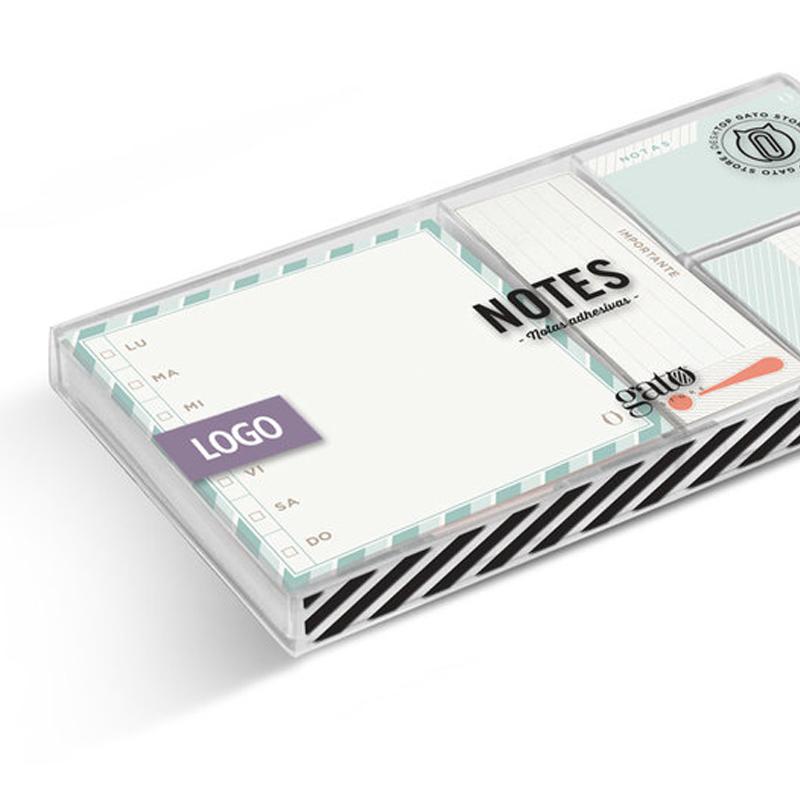 Notas adhesivas. Set ayuda memoria compuesto por 6 modelos de notas adhesivas de distintos tamaños.Papel de 100 gramos con adhesivo. Varias medidas.